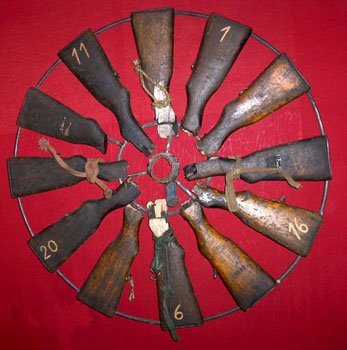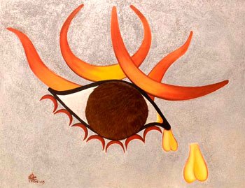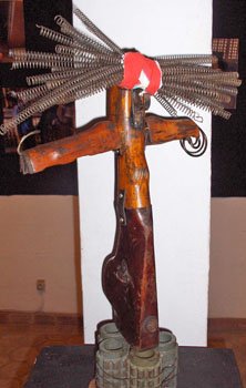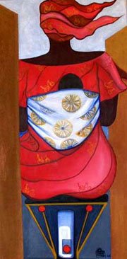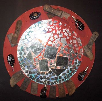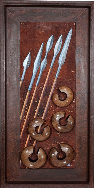 Mixta: acrílico/ tela, lanzas tradicionales, metal. 106 x190 cm. |