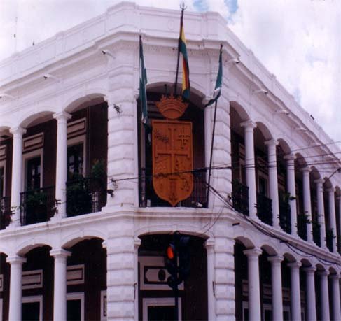 Municipal de Santa Cruz de la Sierra Bolivia. El creador de esta mansión fue un alemán e industrial amigo de Nicolás Suárez industrial de la goma en el Beni, nacido en portachuelo, esta población fue eje central entre el océano pacifico y el Beni los europeos que llegaban se casaban con mujeres chanes de esta manera se crea el poblado de Portachuelo, por su pintorescos paisajes artísticos, los Toborochis de colores rosados, similar a los de la plaza del Estudiante el escudo cruceño se creó el año 1.640 en España, con la cruz de la orden religiosa Franciscana. El León simboliza la Nobleza, la corona al Rey. Después de la toma de Bastilla en Francia, llegan aquí emigrantes franceses. La literatura Europea llegó desde la Argentina por los años 1.700. |