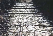 La subida se torna fatigosa, hace mucho rato hemos superado los 4.200 metros sobre el nivel del mar, el sendero es ancho, mide entre cuatro a cinco metros, la fuer te pendiente ha sido vencida por los constructores del camino utilizando varios zigzagues, lo cual permite que el ascenso sea tomado en un menor ángulo. Conforme avanzamos, nos extasiamos con la técnica utilizada en su construcción. |