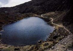 ![]() Vista de la Laguna Glaciar Luru Kheri,a 4405 mts. de altura, uno de los paisajes naturales más atractivos del Takesi |